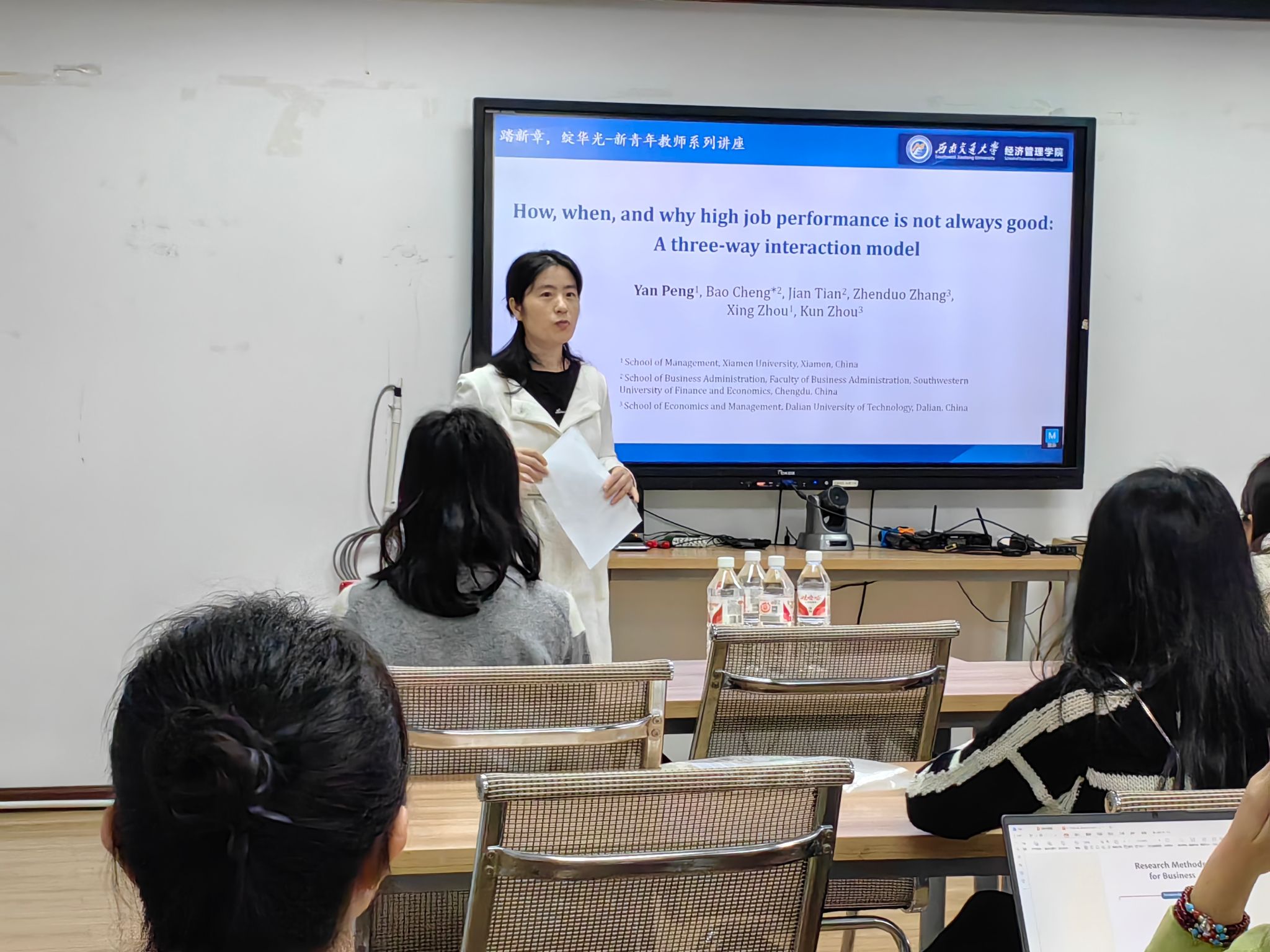 创新创业与管理学系助理教授彭艳博士主讲,主题为“How, when, and why high job performance is not always good: A three-way interaction model”讲座吸引了学院众多硕博研究生及对组织行为学有浓厚兴趣的老师参与,由色色啦