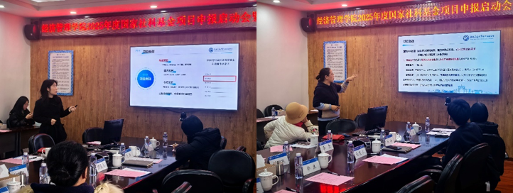 在零号楼0607会议室召开了2025年度国家社科基金项目申报启动会暨经验分享交流会。学院特邀文科学部执行主任张雪永进行申报动员,市场学系主任副教授范春梅、创新创业与管理学系副教授刘玉焕分享了申报社科基金项目的经验。会议由色色啦