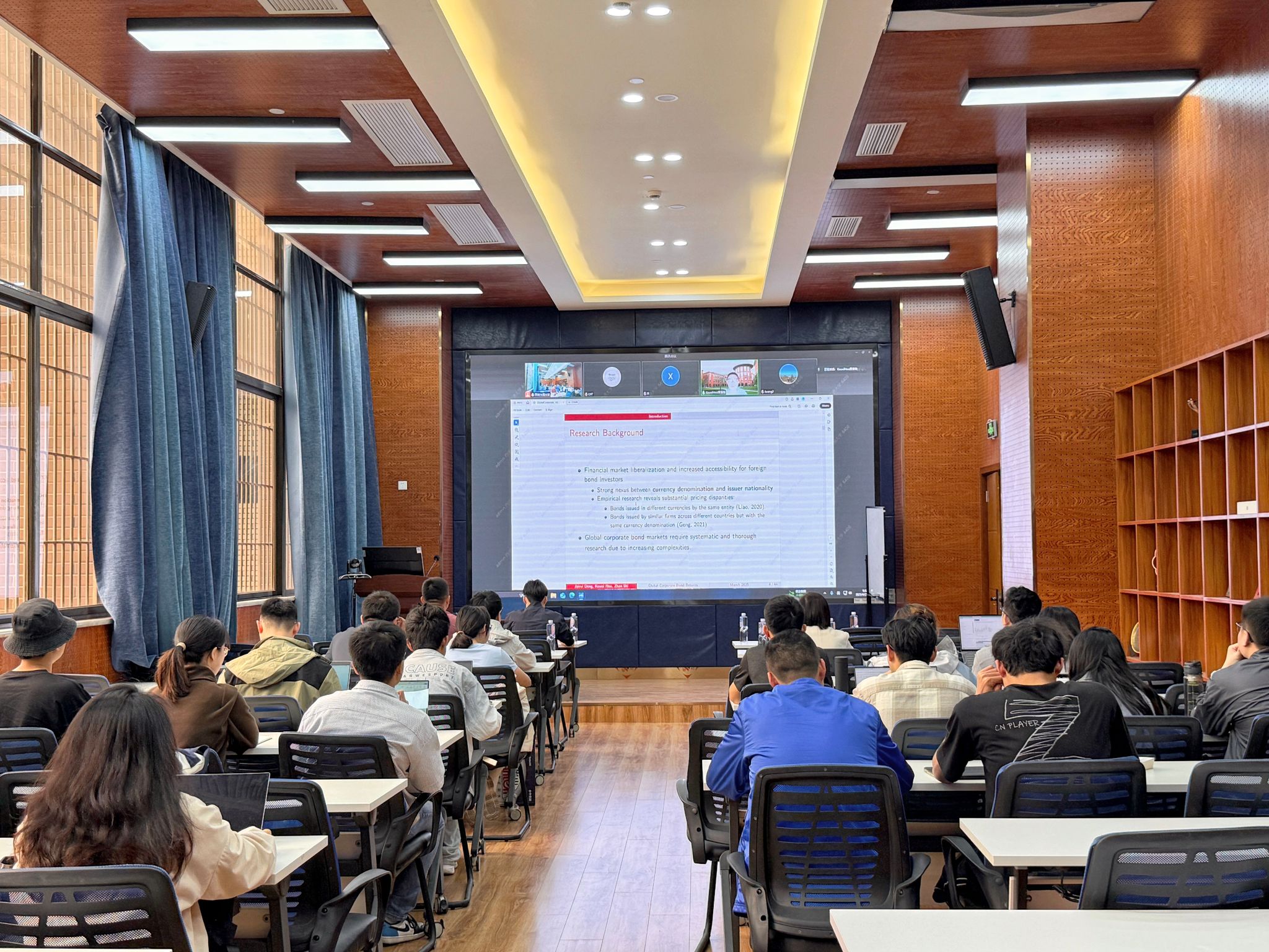 2025年4月25日上午,学院特邀俄亥俄州立大学费舍尔商学院侯恪惟教授为我院师生带来了一场题为“What Drives Global Corporate Bond Returns?”的学术讲座。本次学术活动由副院长马锋主持,学院部分教师及40余名研究生参与此次学术活动。副院长马锋对侯恪惟教授的学术背景与成就进行了简要介绍,并代表学院向侯恪惟教授致以热烈欢迎和诚挚感谢。
