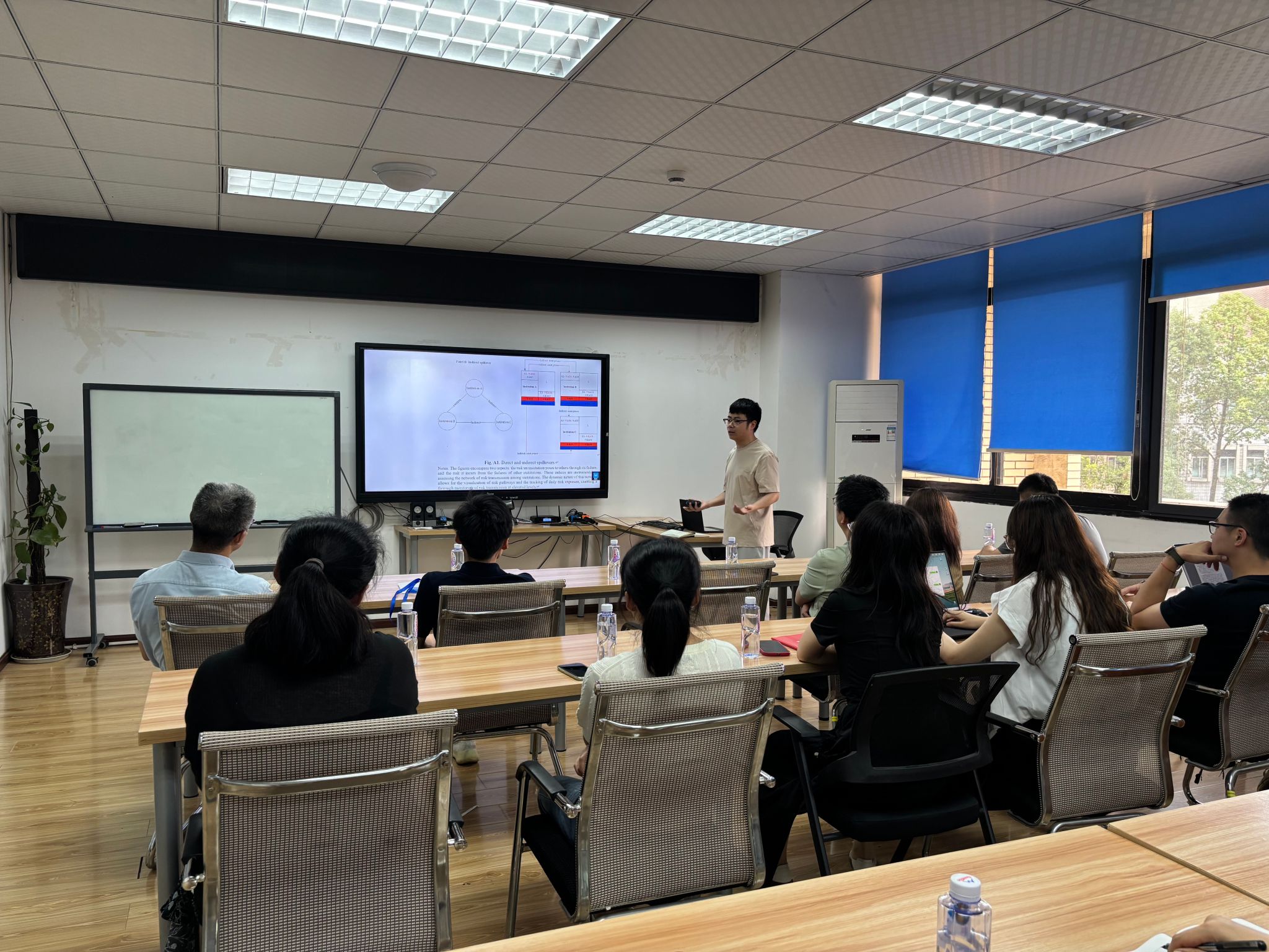 讲座最后,肖杨老师耐心解答了师生们关于模型构建、数据处理及监管政策应用等方面的问题。现场气氛热烈,互动频繁。本次讲座不仅加深了师生们对金融风险传导机制的认知,还在研究设计与政策实践的结合上提供了宝贵启发,为未来的学术探索和金融监管创新注入了新的动力。