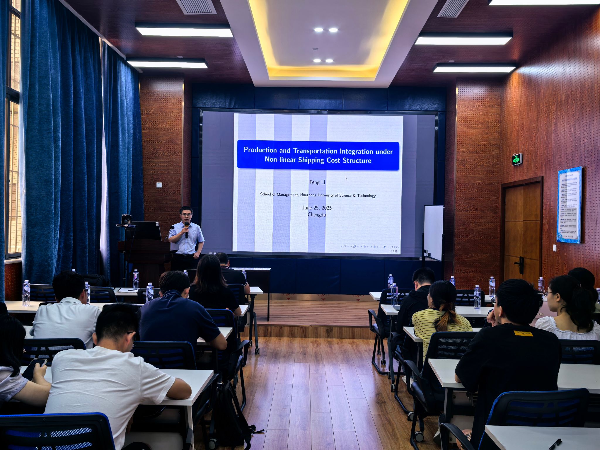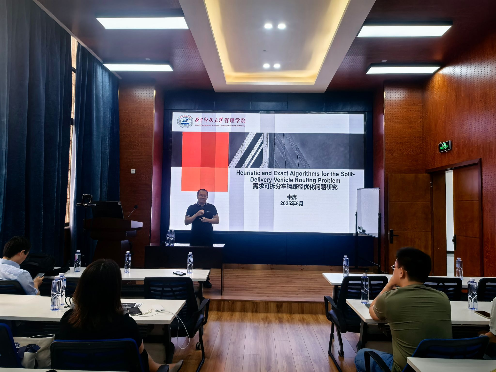 2025年6月25日上午,华中科技大学管理学院秦虎教授和李锋教授应邀莅临我院,分别做题为“需求可拆分车辆路径优化问题研究”和“Production and Transportation Integration Problem”的学术讲座。本次讲座由色色啦