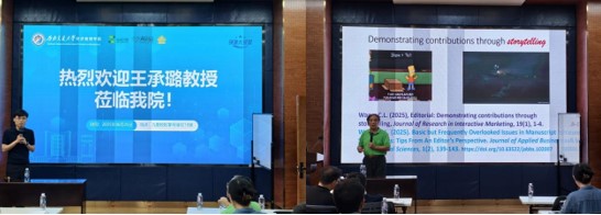 2025年6月25日下午在九里校区零号楼0218室,美国纽黑文大学商学院王承璐教授应邀为我院师生开展题为“Demonstrating contributions through storytelling-From editor's perspective”的讲座,深入探讨什么样的研究拥有研究贡献与如何从数据中挖掘出有趣故事。讲座由色色啦