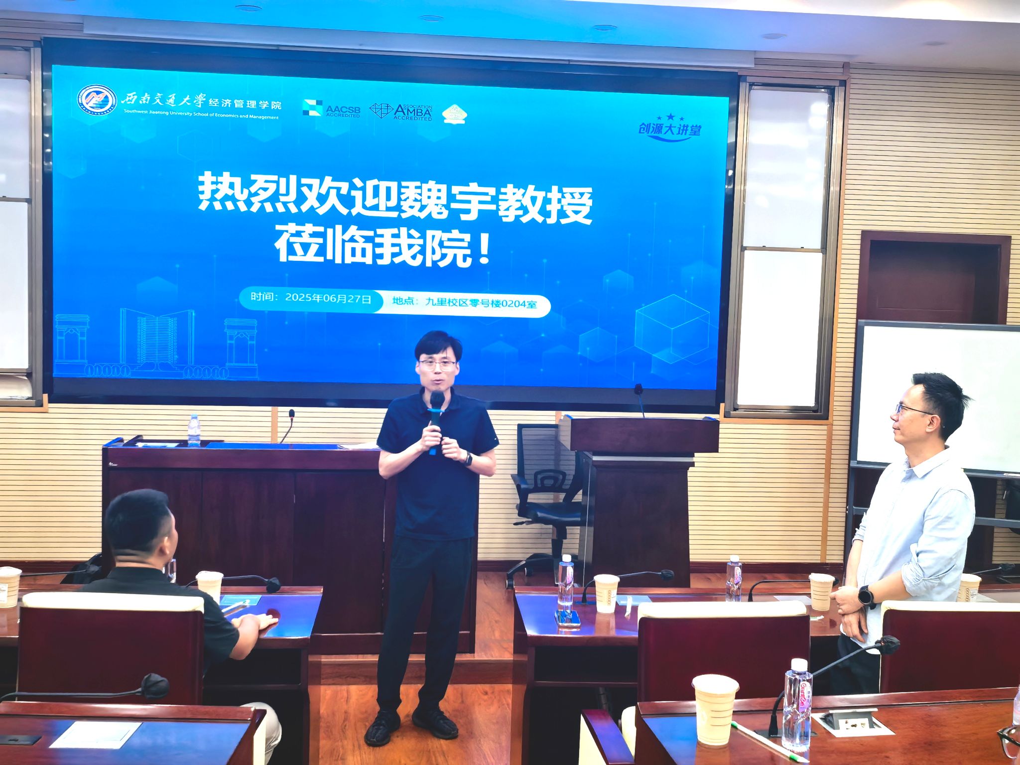 副院长马锋教授主持,学院部分教师及研究生参加了此次活动。马锋副院长介绍了魏宇教授的学术背景与成就,并代表学院对魏宇教授表示热烈的欢迎与诚挚的感谢。
