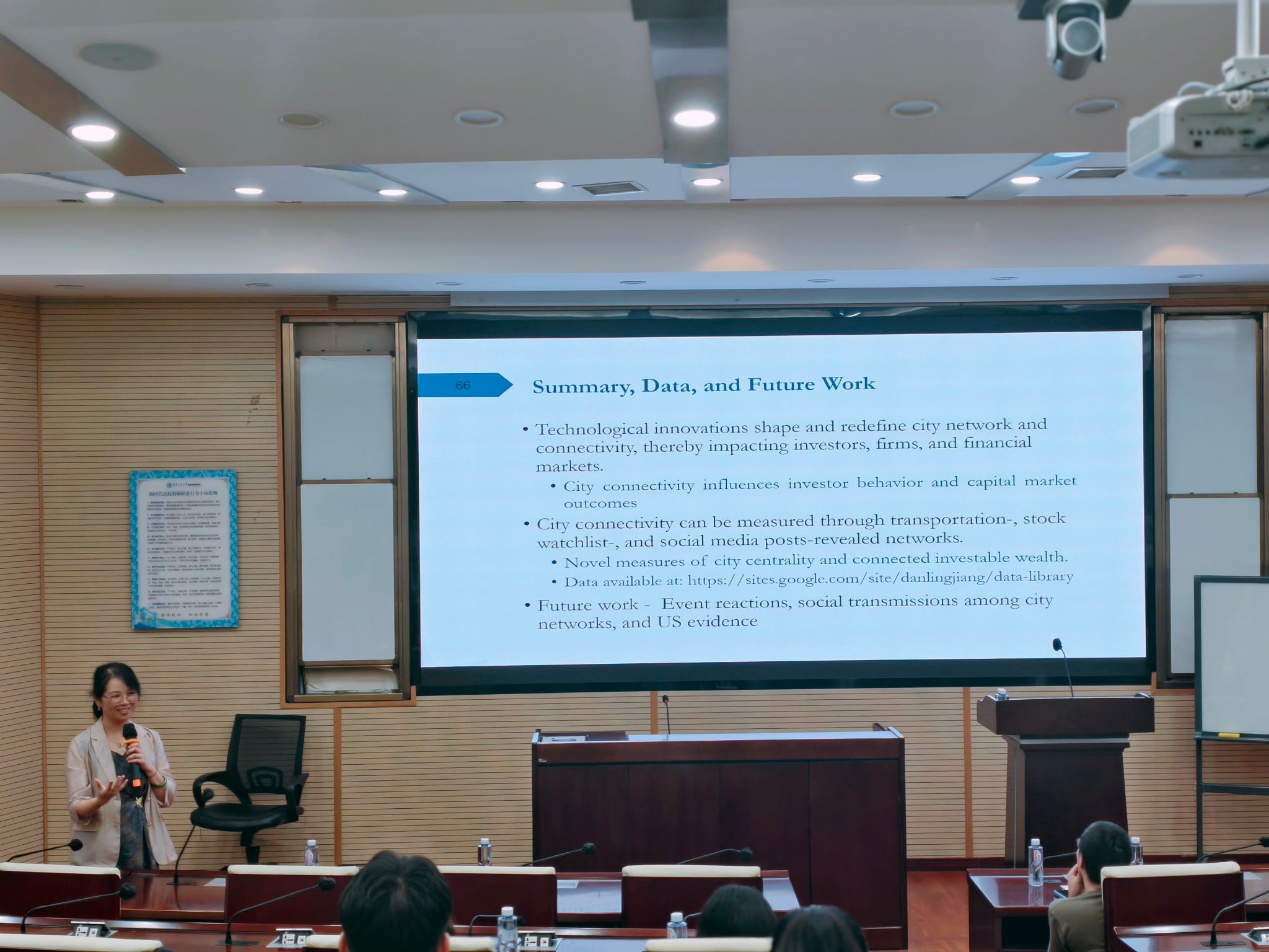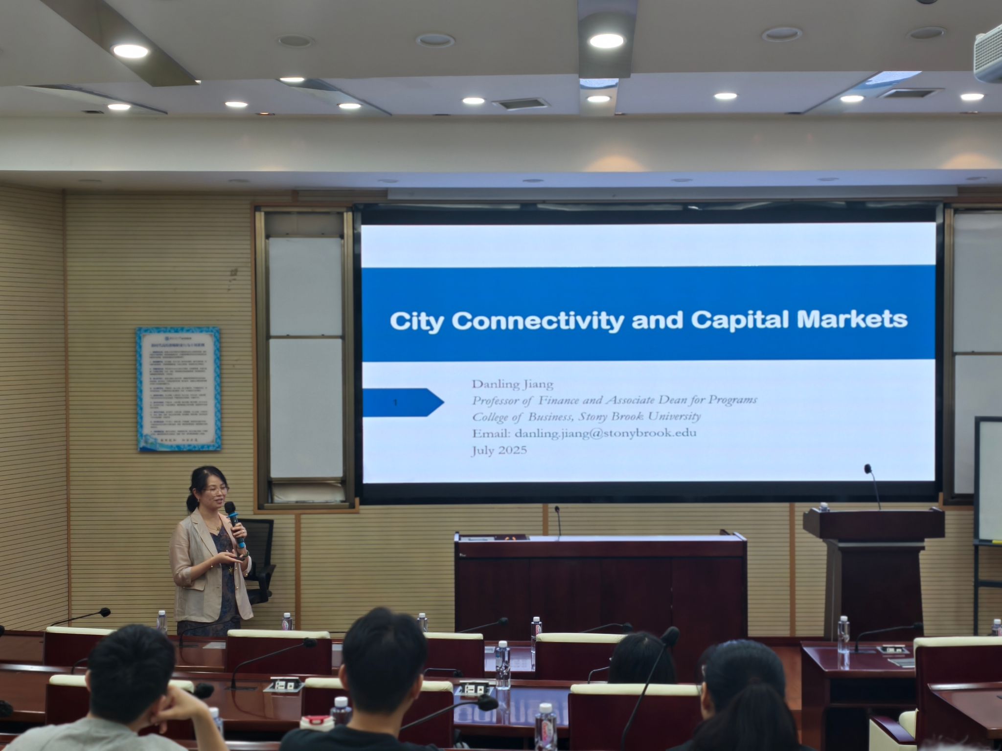 扬华讲座教授蒋丹凌应邀在九里校区零号楼0204室开展题为“City Connectivity and Capital Markets”的学术报告,金融与财务学系主任董大勇教授主持了此次学术活动。董大勇教授介绍了蒋丹凌教授的学术背景及研究成果,并对蒋丹凌教授的到来表示热烈的欢迎。学院金融与财务学系黄登仕教授、朱宏泉教授等近50余名师生参加了此次活动。