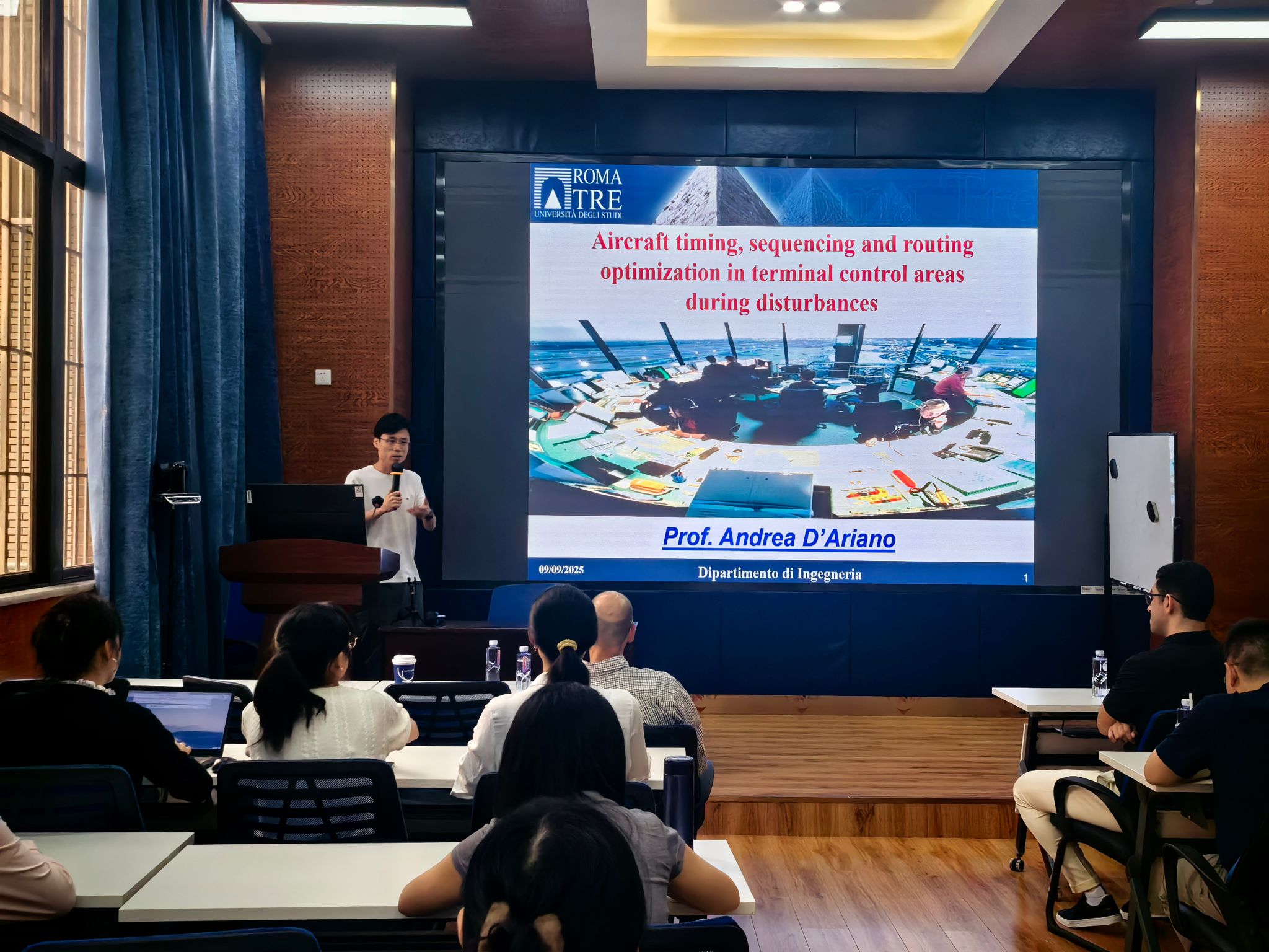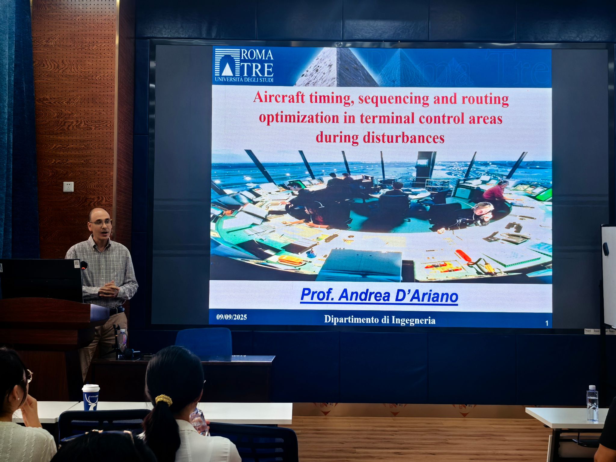 2025年9月9日上午,罗马第三大学Andrea D'Ariano教授应邀为我院师生作题为“Aircraft timing, sequencing and routing optimization in terminal control areas during disturbances”的学术讲座。本次讲座由色色啦