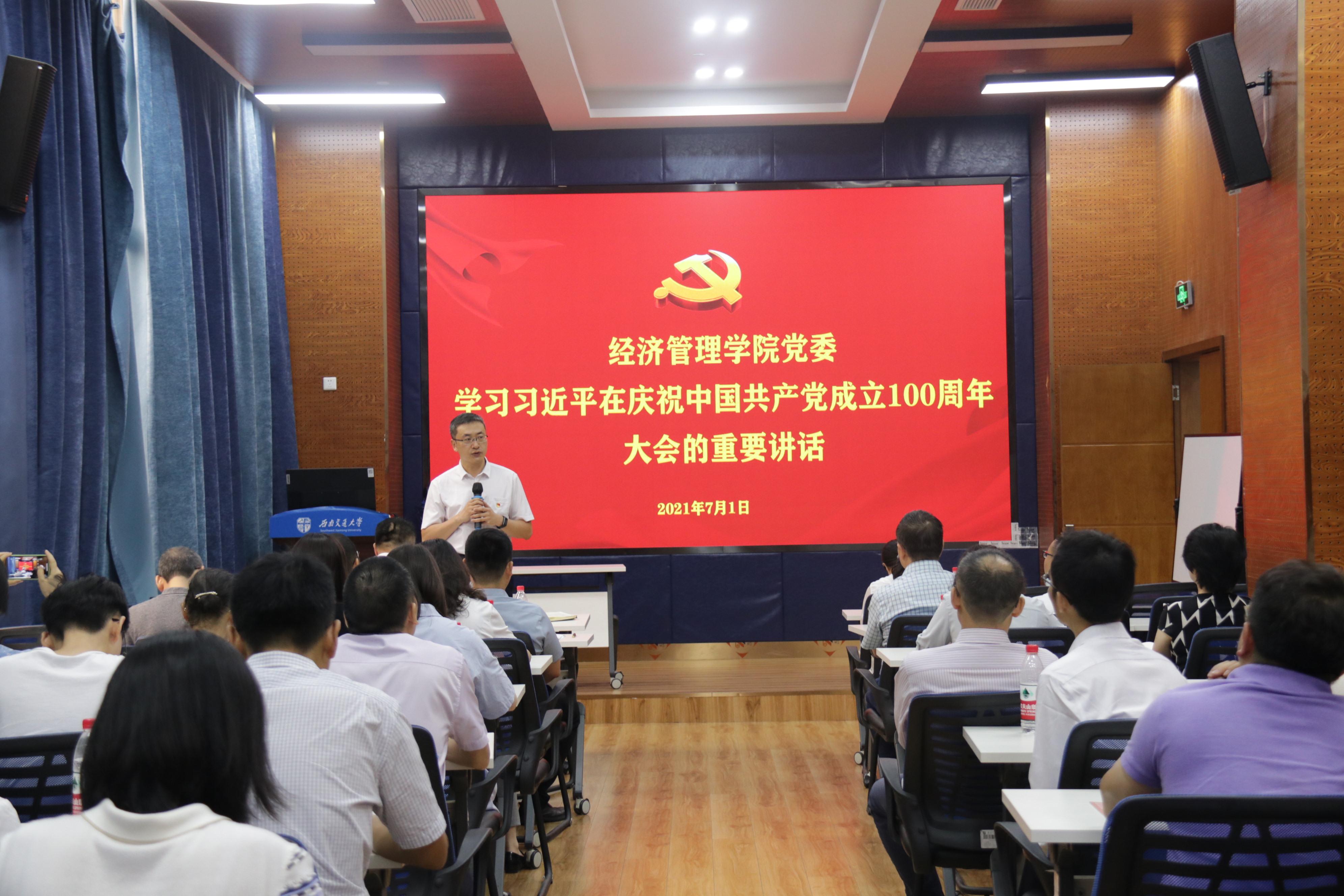 学院师生聚精会神地观看了在北京天安门广场隆重举行的庆祝中国共产党成立100周年大会。中共中央总书记、国家主席、中央军委主席习近平发表了重要讲话,带领我们回顾中国共产党百年奋斗的光辉历程,展望中华民族伟大复兴的光明前景。他强调,过去一百年,中国共产党向人民、向历史交出了一份优异的答卷。现在,中国共产党团结带领中国人民又踏上了实现第二个百年奋斗目标新的赶考之路。中国共产党立志于中华民族千秋伟业,百年恰是风华正茂。回首过去,展望未来,有中国共产党的坚强领导,有全国各族人民的紧密团结,全面建成社会主义现代化强国的目标一定能够实现,中华民族伟大复兴的中国梦一定能够实现。习近平代表党和人民庄严宣告,经过全党全国各族人民持续奋斗,我们实现了第一个百年奋斗目标,在中华大地上全面建成了小康社会,历史性地解决了绝对贫困问题,正在意气风发向着全面建成社会主义现代化强国的第二个百年奋斗目标迈进。这是中华民族的伟大光荣,这是中国人民的伟大光荣,这是中国共产党的伟大光荣。
