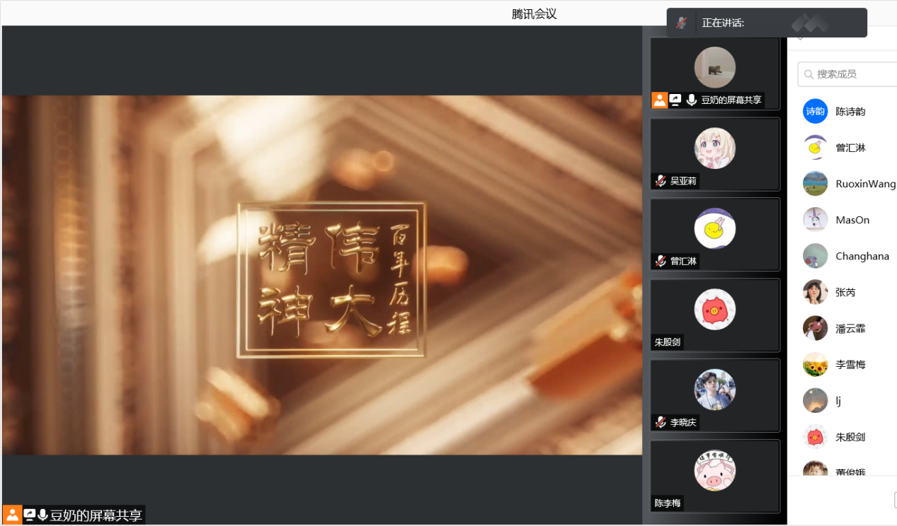 会议之初,曲芯雨同志带领大家学习了习近平总书记在庆祝中国共产党成立100周年大会上的重要讲话,重温了新中国成立至今的重大改变、光辉成就以及目标展望,学习了以史为鉴,开创未来的九个“必须”以及作为新时代的中国青年需要担当的使命与责任,并邀请党员同志分享学习心得;随后,全体同志通过观看云讲堂视频“百年历程中的伟大精神”,学习红船精神、长征精神、女排精神以及抗美援朝精神。同志们对坚定理想、百折不挠的奋斗精神,立党为公、忠诚为民的奉献精神,同人民群众生死相依、患难与共、艰苦奋斗的精神,顽强战斗、勇敢拼搏的精神都有了深刻的理解。进一步地支部书记曲芯雨同志鼓励支部党员、积极分子不仅要被动地了解党日活动上学习的党史,也要通过各种途径主动地学习,加强自身的理论建设,增加知识储备,同时她还提醒大家疫情尚未结束,党员同志依然要做好防护工作,发挥党员模范作用。