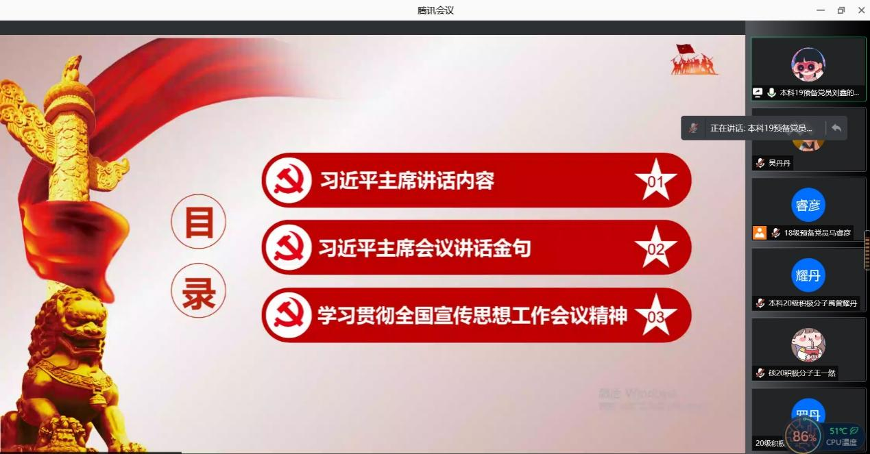 硕士2020级第二党支部与本科管理类党支部在线上举办以宣传思想工作专题和十九届六中全会学习为内容的专题学习活动。本次活动以深入推进日常政治学习为主要目的,辅以促进党支部之间的交流学习。会议由色色啦