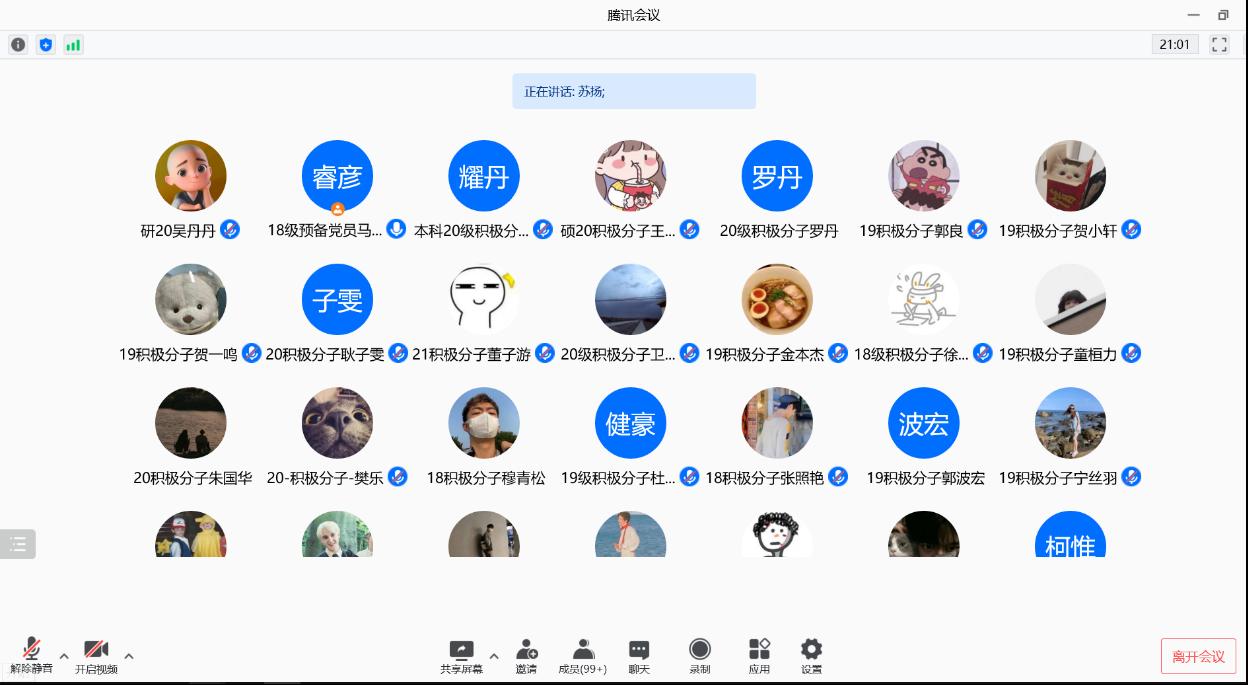 最后,苏扬老师对两支部的联合学习表示肯定,并希望大家在初步学习专题内容后,能够进一步深入学习,学深悟透、融会贯通。