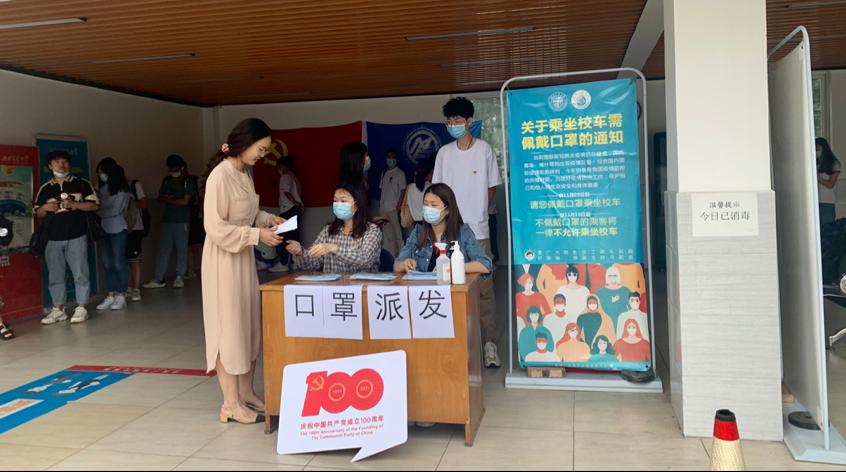 2021年5月27日的下午,在本科经贸类党支部的带领之下,党支部的党员、预备党员还有积极分子们纷纷准时到达校车站开始准备本次志愿活动。面对有再次猖獗之势的新冠肺炎,在人口流动较大的校车站,做好防护的重要性不言而喻。我们提前在志愿地点摆放好了桌椅,方便来往的老师同学们能及时领取口罩。我们看到绝大部分师生都早已自己准备好了口罩,但如果能帮到即使一位,这也是志愿活动的意义所在!当天下午的太阳很炙热,明晃晃地照射在水泥地上,反射出双重灼烈。可是想到志愿能给他人带来的帮助,即使炎热也不能阻挡同志们的脚步!