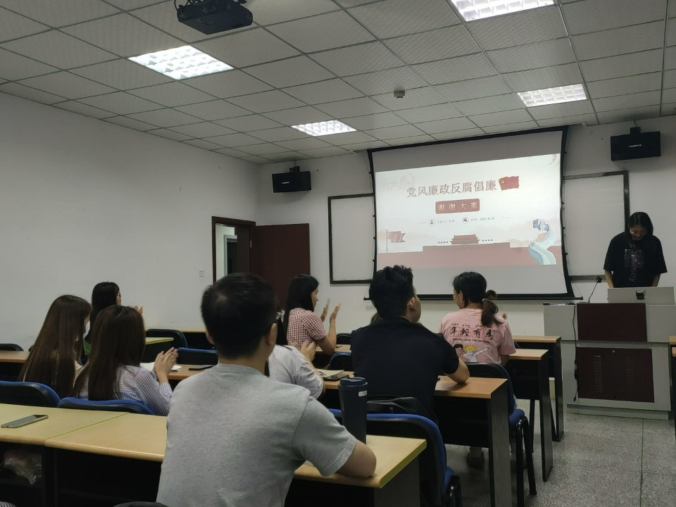 硕士2020级第一党支部在九里校区0304教室,开展了“党风廉政反腐倡廉”专题学习组织生活会。本次会议由支部内的任茜同志进行主讲。支部内党员、积极分子参会。