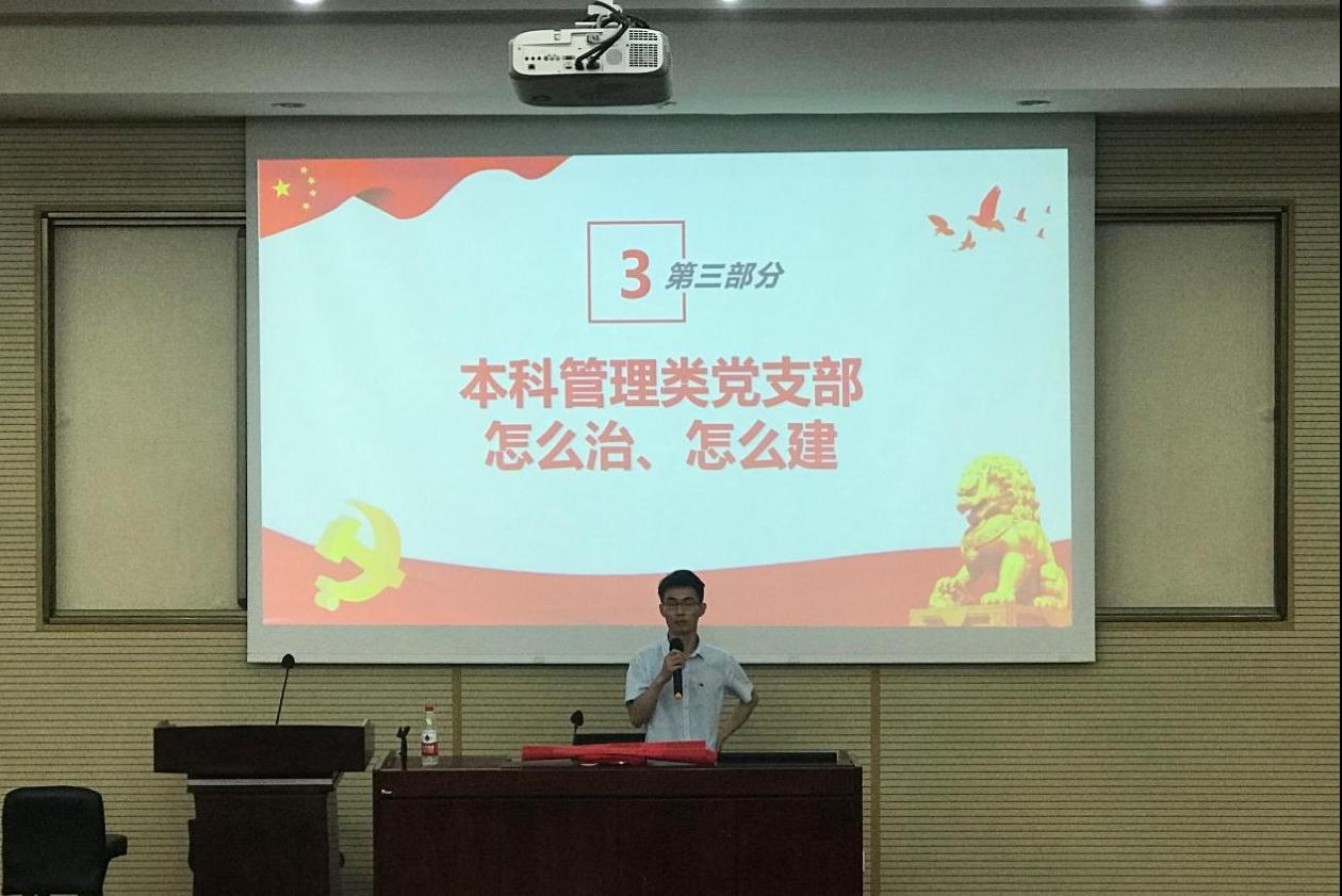 本科管理类党支部书记苏扬老师进行主讲,带领全体同学走进此次专题学习。本次活动学习了为什么要全面从严治党,《中国共产党普通高等学校基层组织工作条例》和《中国共产党支部工作条例(试行)》等内容。