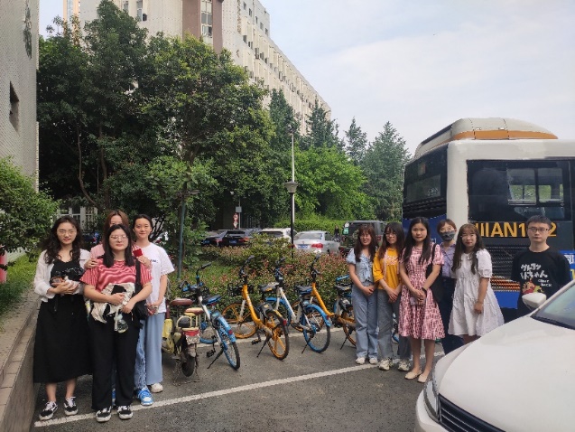 在将共享单车摆放整齐后,大家进行了合影留念。
