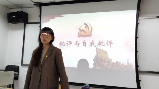首先由支部书记贾佳老师进行述职,对支部问题情况进行汇报,总结了支部去年申请的活动,并获得了的荣誉,表示这是大家共同努力的结果。并对布置了本学期支部即将开展的活动安排。然后由支委带头进行批评与自我批评,贾佳同志表示:其实每个人身上都有缺点,大家需要去正视自己的缺点,自身在党员同志或者同学生相处的方式上,需要继续改进,用更柔性化一点的方式;在工作方面态度不够积极,平时关注国家大事还是不太够,思想上没有真正的和就达到一个优秀党员的这样的一个要求,没有与时俱进。后续党支书、宣传委员、组织委员、各位党员依次进行了批评与自我批评的发言。