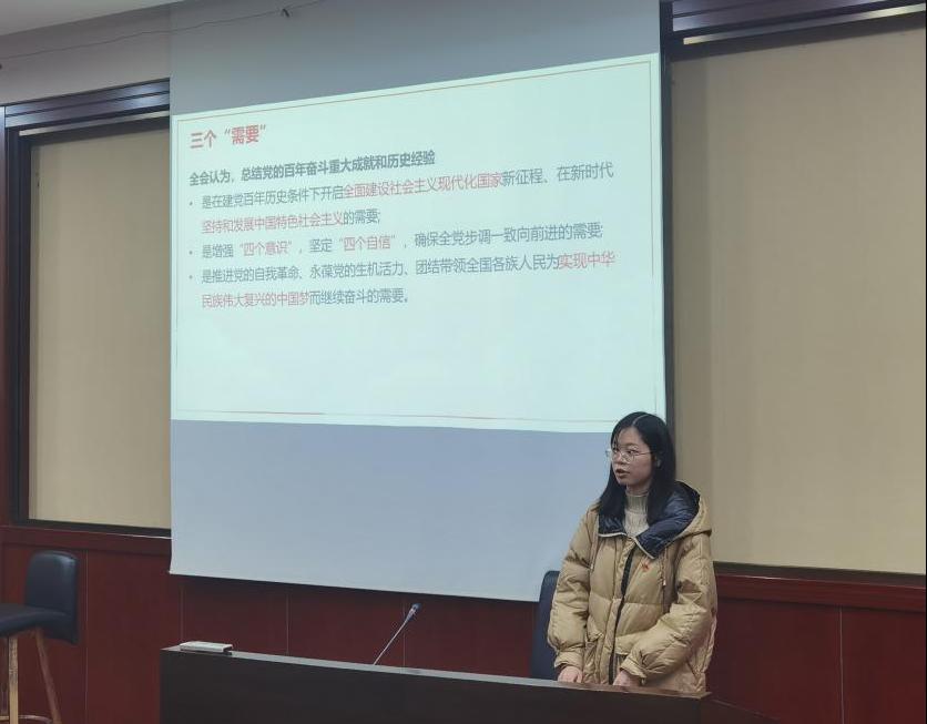 12月21日,硕士2021级第五党支部开展学习“党的十九届六中全会精神”主题党日活动。活动由支部书记袁明烨同志主持,联系本支部的学院党委委员郭强同志出席指导。支部内党员、积极分子参会。