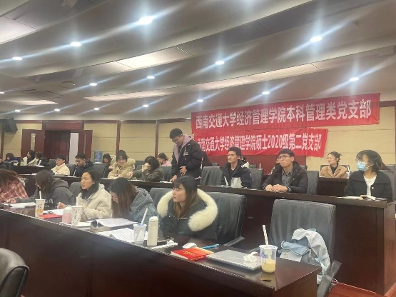 硕士2020级第二党支部联合本科管理类党支部在九里校区零号楼0224教室举办“庆百年党史,发青春之声”经典故事演讲比赛。本次演讲比赛由硕士2020级第二党支部官慧同志主持,到场老师有贾佳、苏扬以及张媛媛。