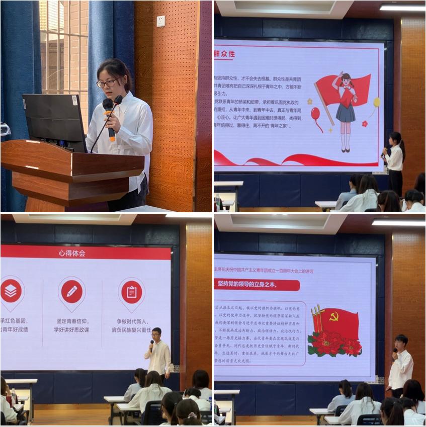 本期发展对象李思雨、何鑫、范方园、焦新将也上台分享了他们的学习感悟。他们认为, 作为当代青年人,我们应当主动接受爱国教育和党史学习,努力提升自己的思想政治素养,杜绝个人主义思想。在日常的生活中也能起到模范带头作用,积极投身于各项志愿活动和组织工作等,为把我国建设成为富强、民主、文明、和谐、美丽的社会主义现代化强国奉献自己的一份力量。新的青年一代已经开始接过中华民族伟大复兴的接力棒,应当发挥自己的光和热,不忘初心,不负韶华,奋力前行,为实现第二个百年奋斗目标贡献出自己的一份力量。