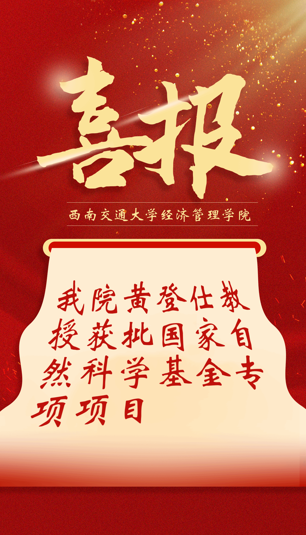 【科研】喜报!我院黄登仕教授获批国家自然科学基金专项项目