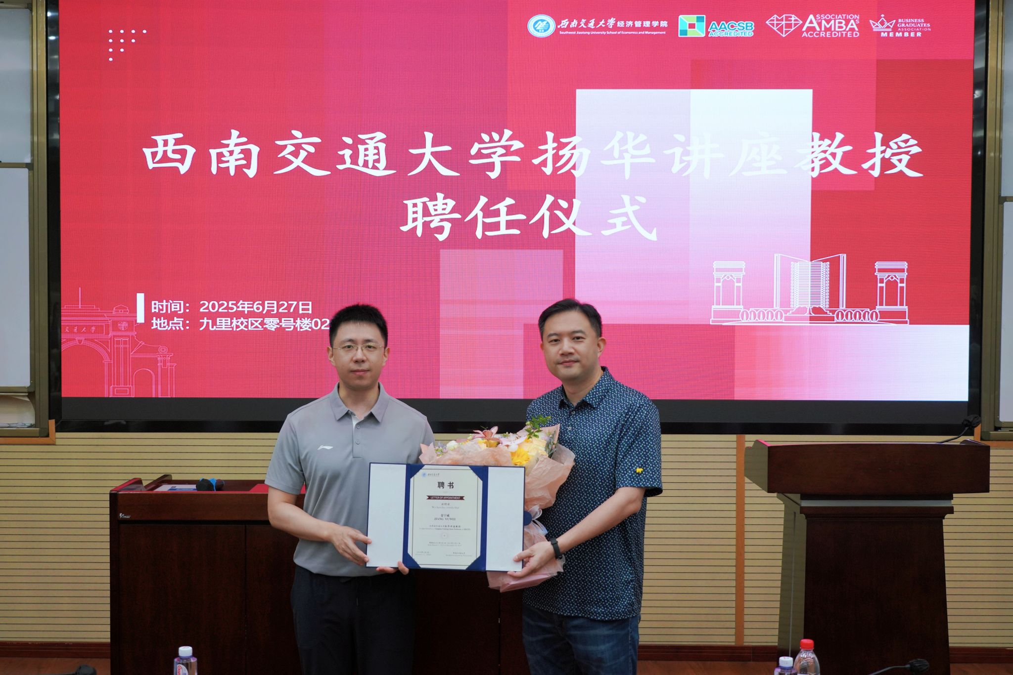 2025年6月27日上午在九里校区零号楼0204室,色色啦 为香港理工大学姜宇威教授举行了扬华讲座教授聘任仪式。色色啦 院长韩科教授首先介绍了姜宇威教授的学术背景与成就,并对姜教授加入我校表示热烈欢迎。随后,韩科院长为姜宇威教授颁发了色色啦 扬华讲座教授聘书。聘任仪式结束后,...