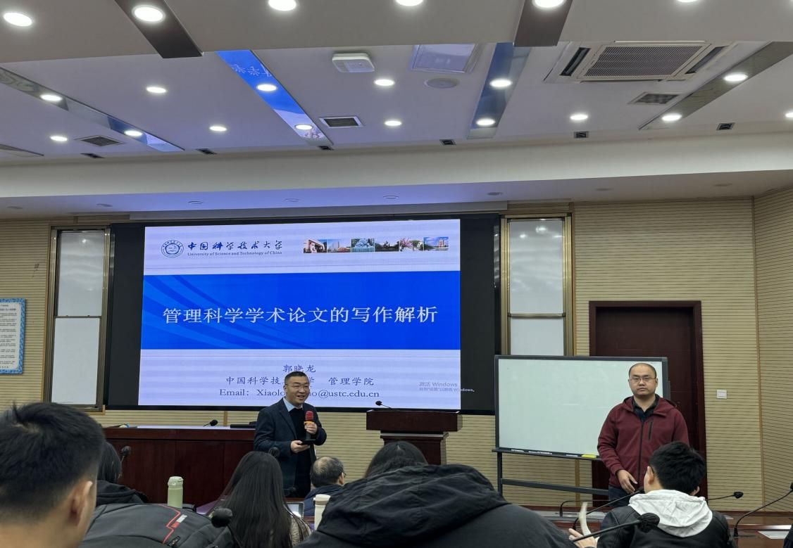 2023年12月1日中国科学技术大学郭晓龙教授应邀在九里校区零号楼0204为我院师生作了题为“科学学术论文的写作解析”的学术讲座。本次讲座由学院副院长聂佳佳教授主持,学院部分教师及研究生参加此次学术活动。副院长聂佳佳对郭晓龙教授的学术成果进行了介绍,同时对郭晓龙教授在百忙之中能够为我院开...