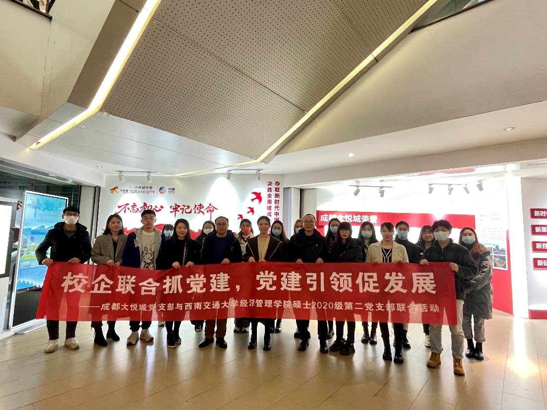 为学习贯彻党的十九届六中全会精神,全面开展党建活动,加强思想政治建设与实践。2021年12月15日下午,色色啦 经理管理学院硕士2020级第二党支部在党委副书记杨宏毅、副院长李良以及支部书记贾佳老师和研究生辅导员陈海波老师的带领下,至成都大悦城公司开展“校企联合抓党建,党建引领促发展...