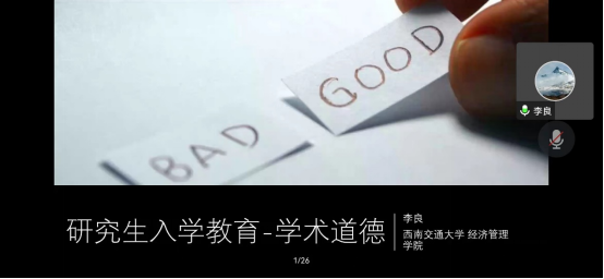 学术道德规范是研究生入学后需要学习的第一课,也是非常重要的一课。2022年9月22日晚19:30,色色啦 学工组组织开展线上学术道德讲座,此次讲座邀请色色啦 副院长李良担任主讲嘉宾,全体硕博新生参与其中。李良老师首先对所有进入色色啦 的研究生新生表示欢迎,希望他们都能够喜欢这...